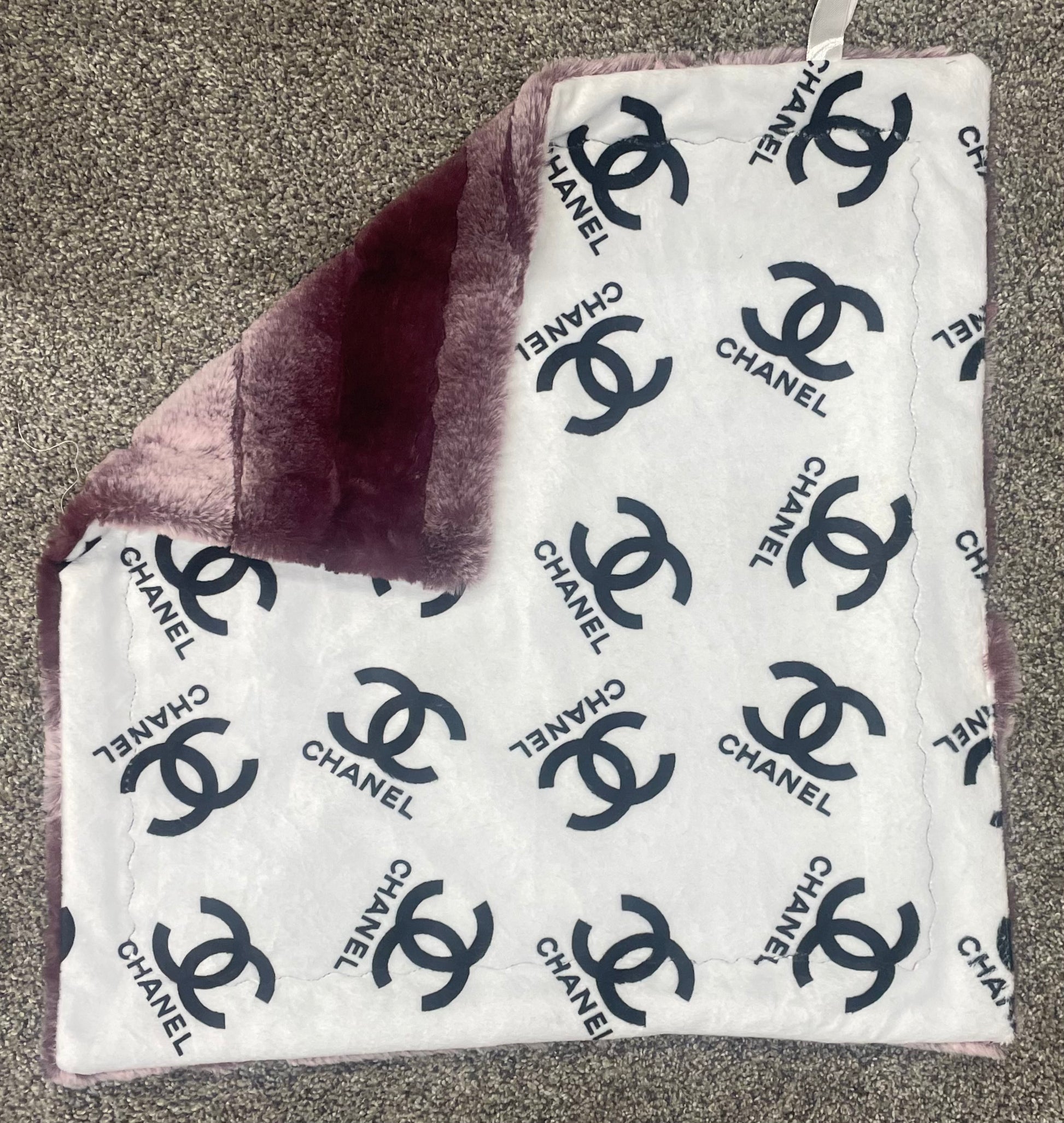 Top is a super soft minky print, with a plumwine Sahara minky back & an enveloped finish.