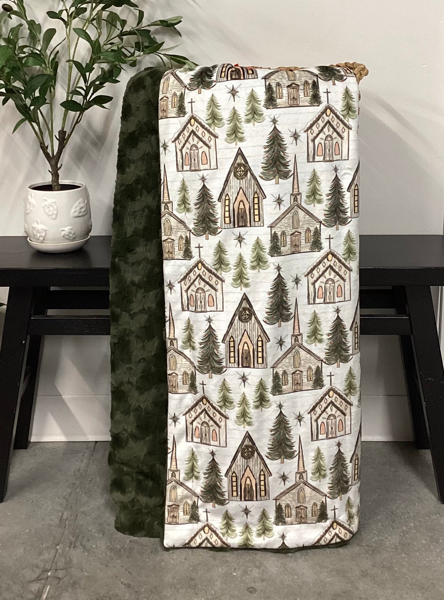 Top is a designer printed minky, luna loden minky back & an enveloped finish.