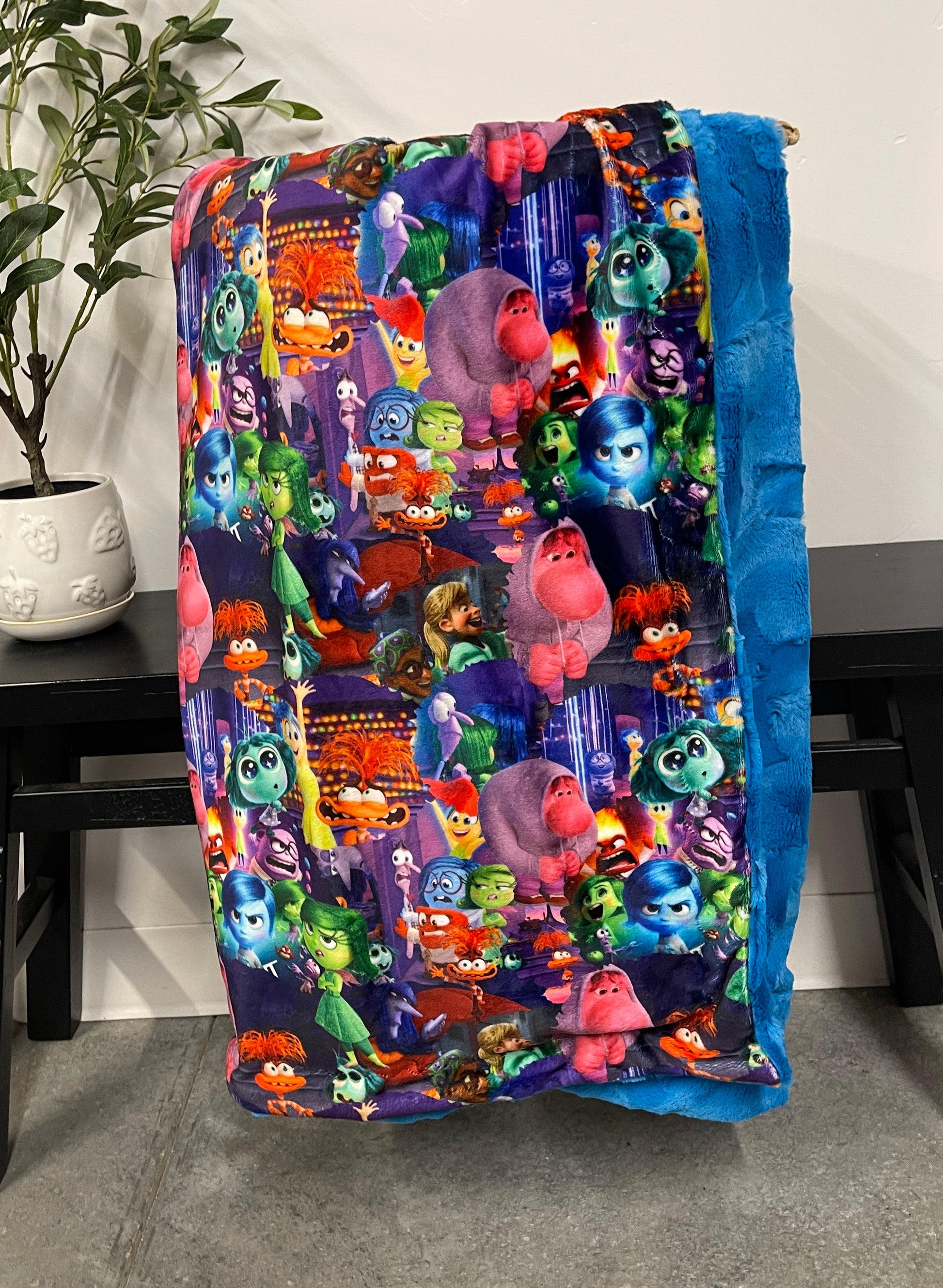 Top is a super soft minky print, with a silver bunny minky back & an enveloped finish.