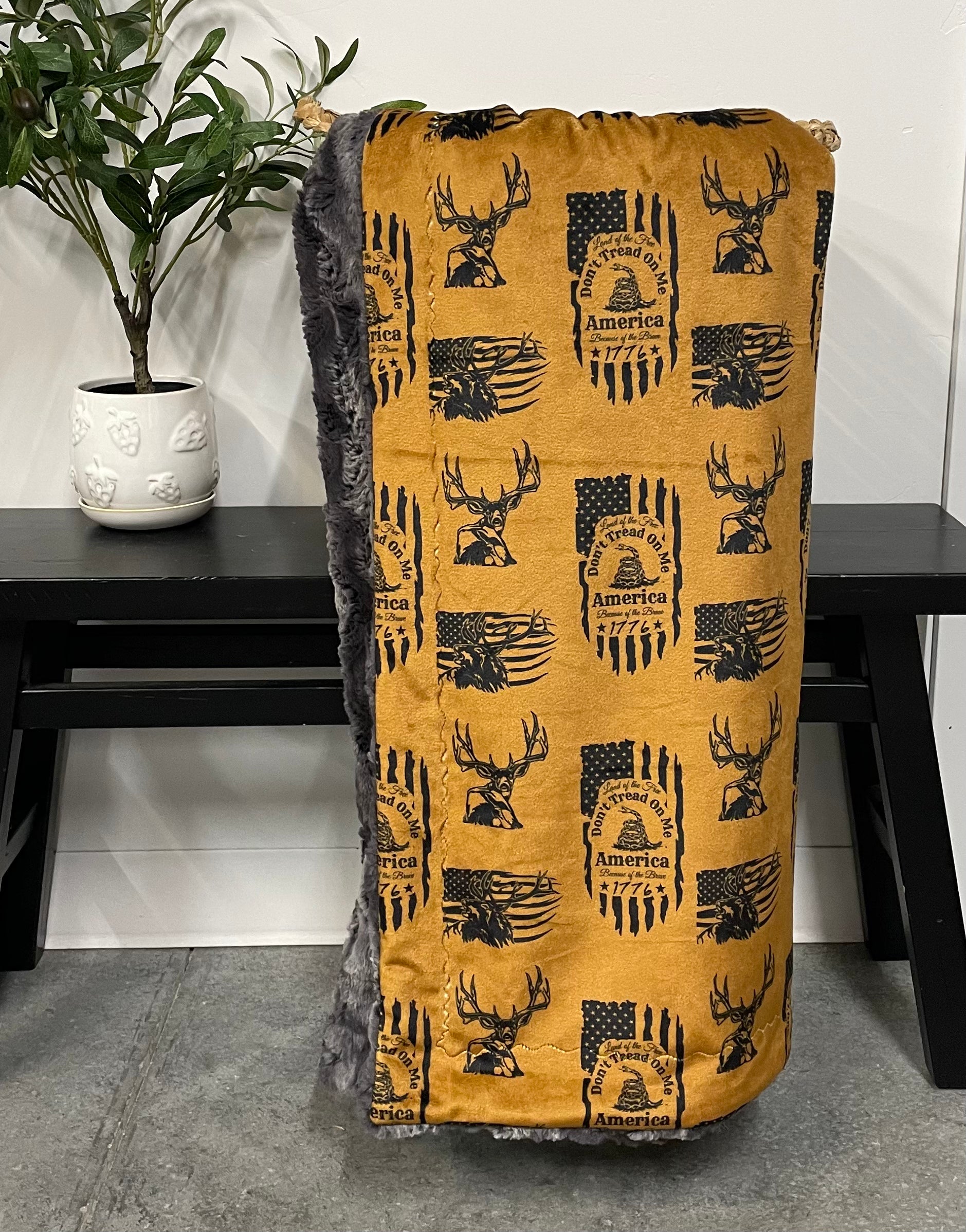 Top is a super soft minky print, with a luxe wild rabbit nine iron minky back & an enveloped finish.
