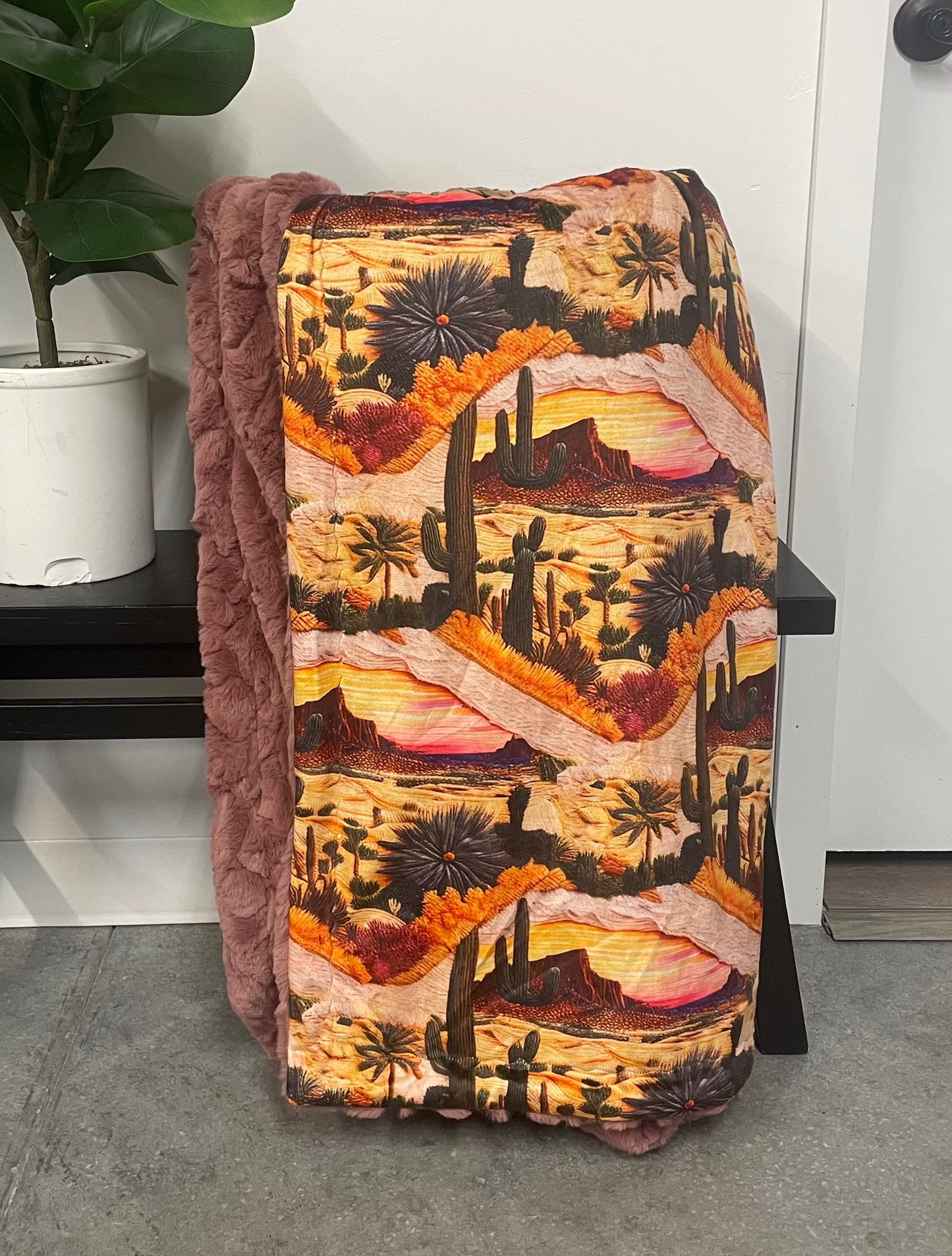 Top is a designer printed minky, Tuscany desert rose minky back & an enveloped finish.