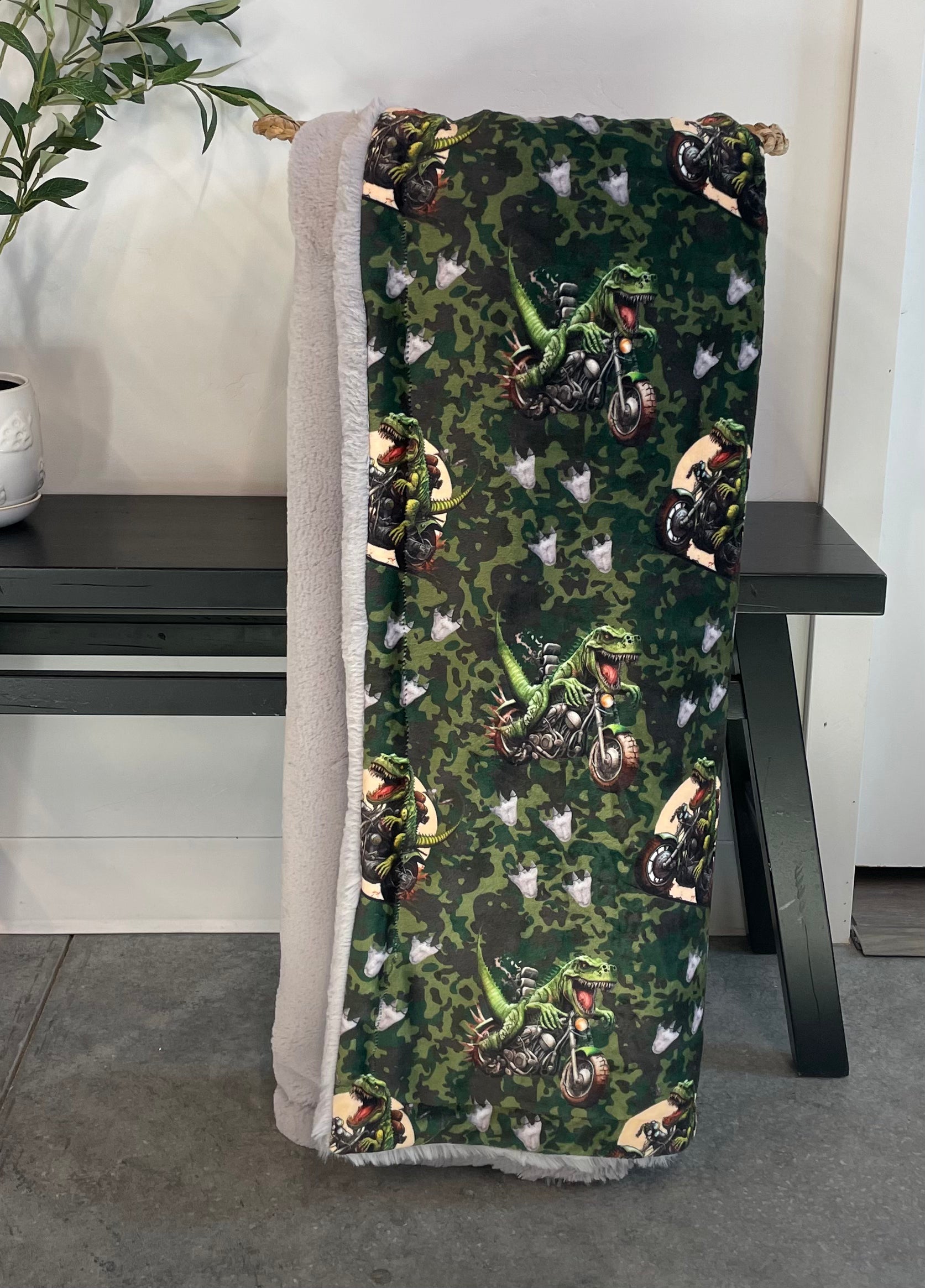 Top is a super soft minky print, with a silver bunny minky back & an enveloped finish.