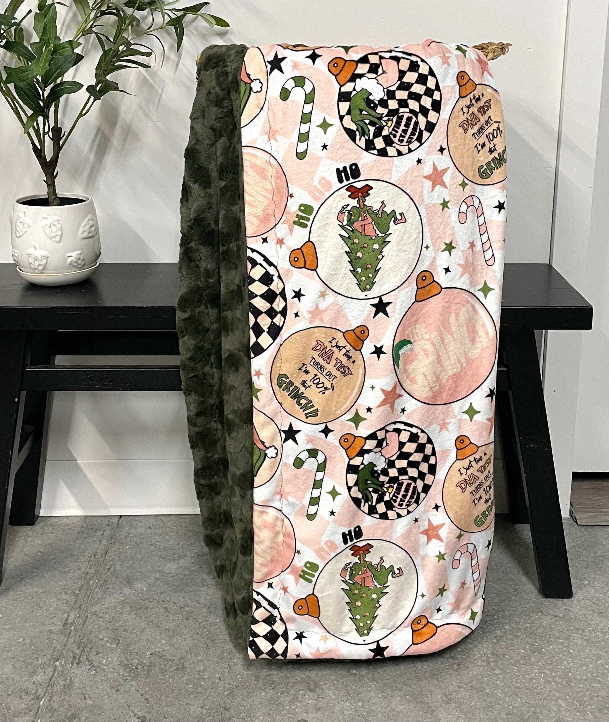 Top is a designer printed minky, laden luna minky back & an enveloped finish.