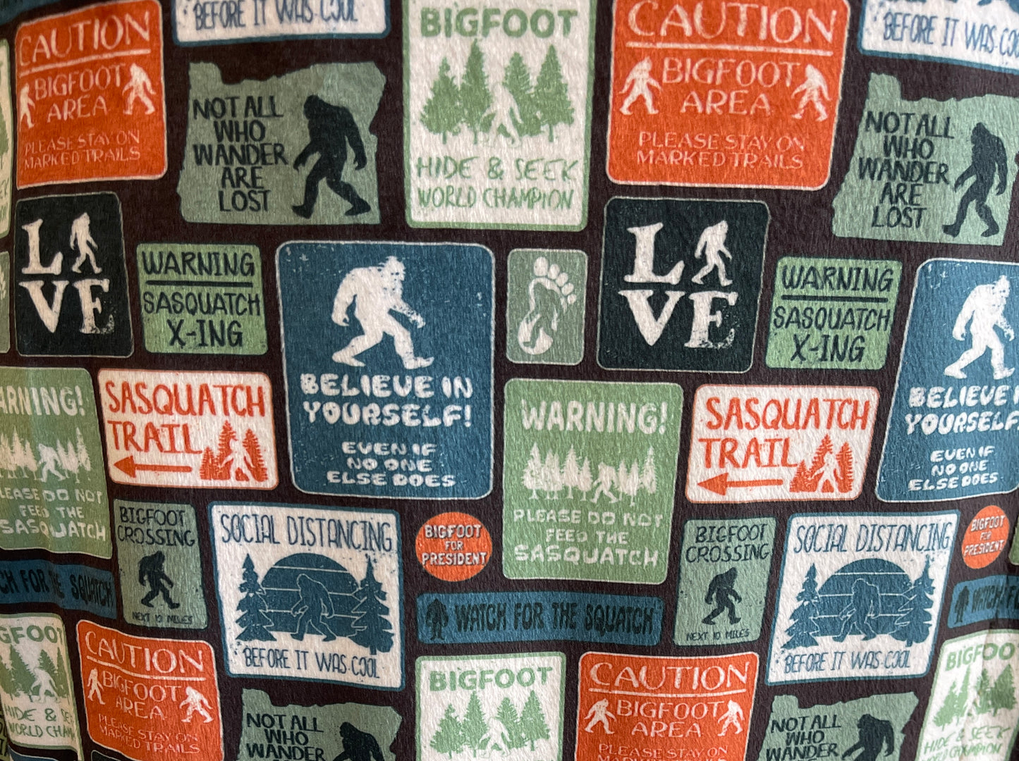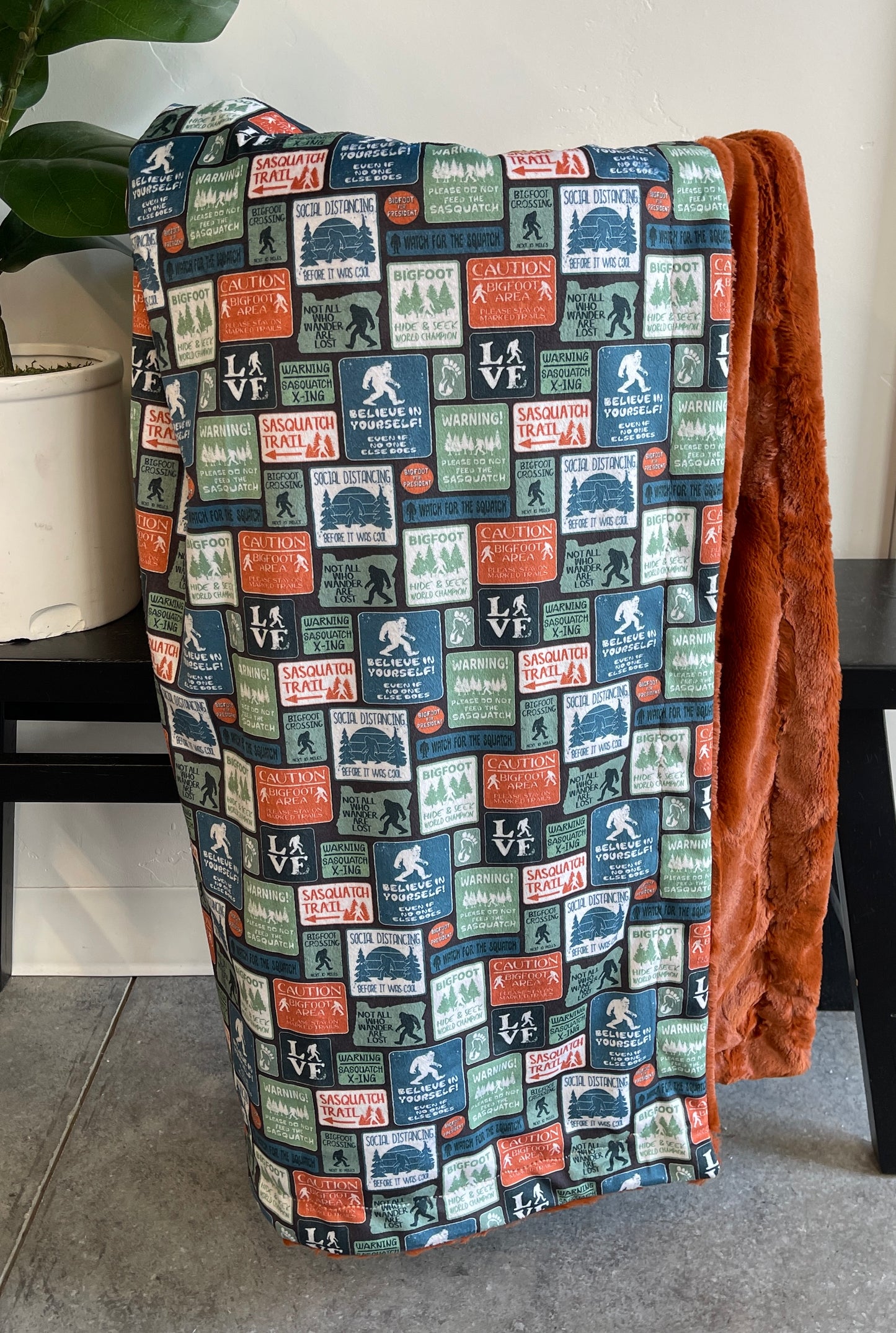 Top is a designer printed minky, with a ginger hide minky back & an enveloped finish.