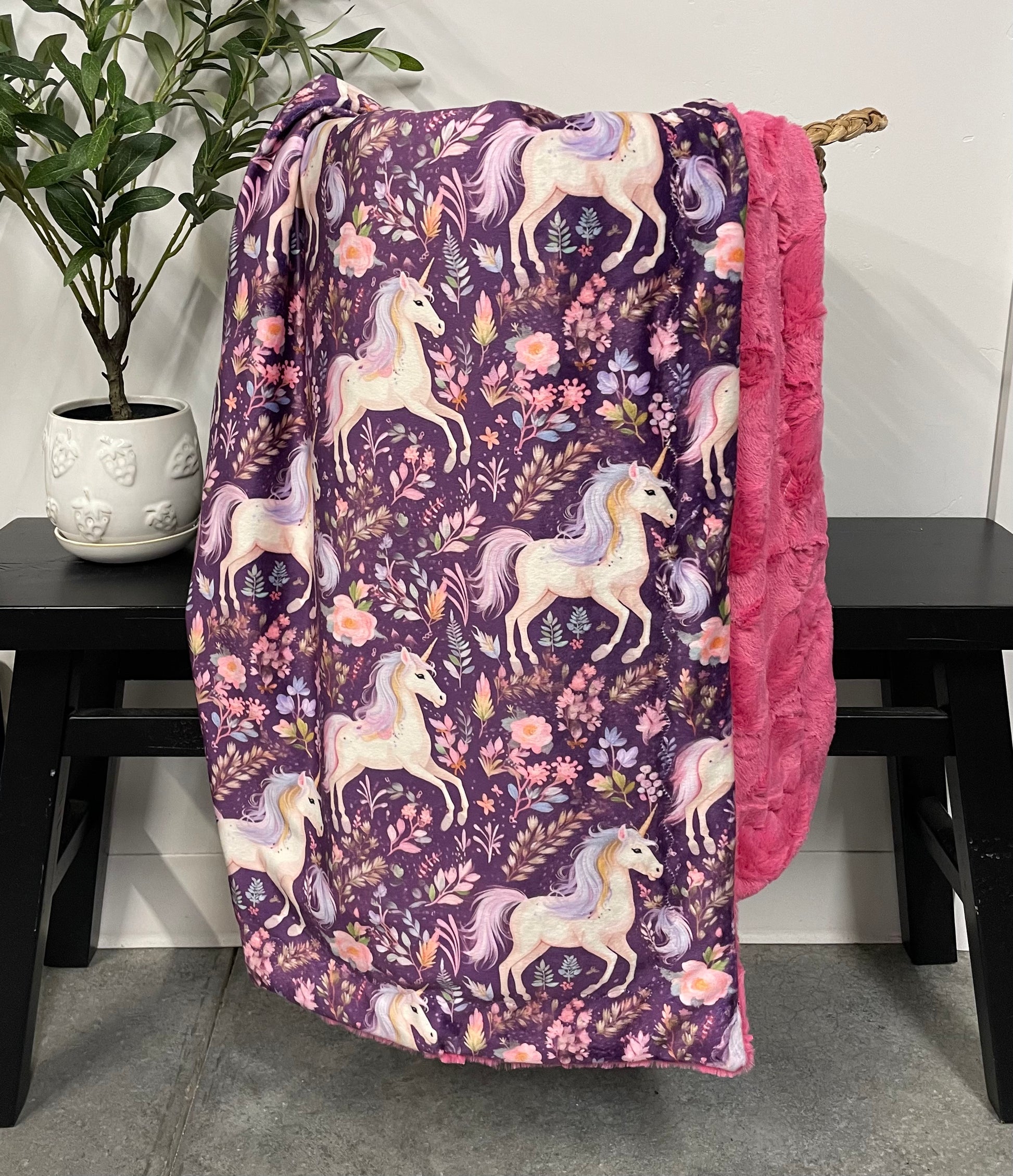 Top is a super soft minky print, with a carnation hide minky back & an enveloped finish.
