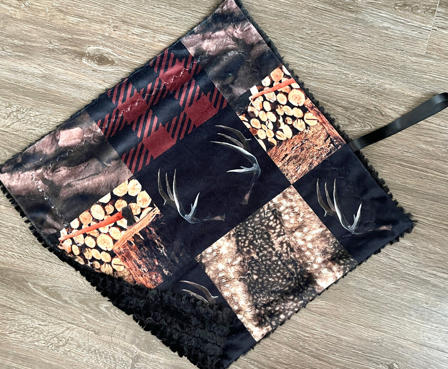 Top is a super soft minky print, with a black Brooklyn minky back & an enveloped finish.
